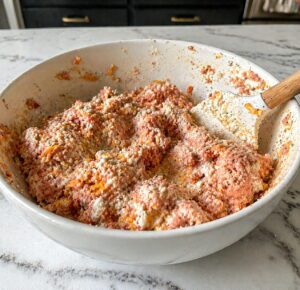 - In a large bowl combine Ground Turkey, Cottage Cheese, Cheddar, Breadcrumbs, Egg, Garlic Powder, Onion Powder, Paprika, Salt and Black Pepper. Mix until everything is fully combined.