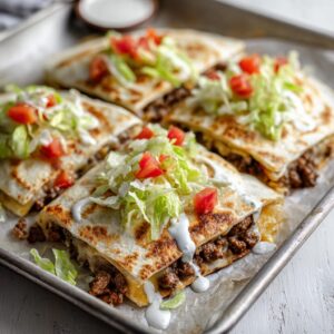 The base of this recipe is seasoned lean ground beef cooked until crumbly and flavorful. Instead of layering everything thick and heavy, the ingredients are spread evenly so each square gets beef, cheese, and tortilla in every bite.
