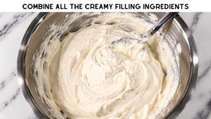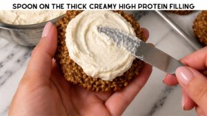 - Make the filling: In a bowl, mix: Greek yogurt, Cream cheese, Protein powder, Sweetener, Vanilla. Beat until smooth and fluffy.